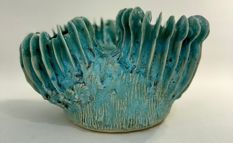 Zein calls it The Third Kingdom. Funga. A world she invented and then populated with beings that have names, personalities and purposes. Ten shapes. Eight vessels and two murals. The Calvatia is nurturing, big-bellied, and devoted. The Coprinus is cerebral, elaborate, whispering wisdom from somewhere ancient. The Polyporus is curious, with multiple heads that sprout in different directions like someone who cannot stop asking questions.